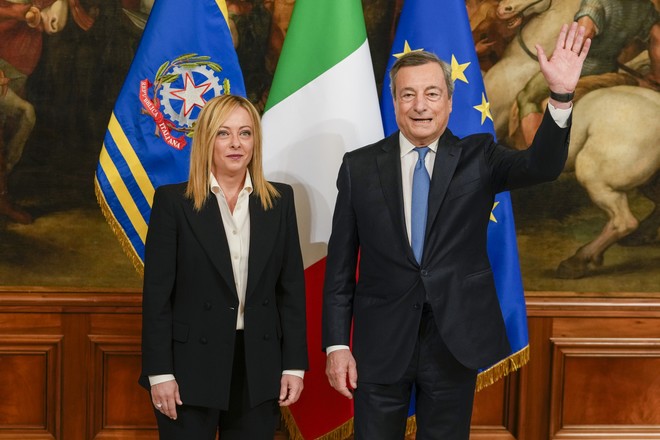 Ιταλία: Πραγματοποιήθηκε η τελετή παράδοσης-παραλαβής – Ο Ντράγκι έδωσε το “χρυσό καμπανάκι” στην Μελόνι