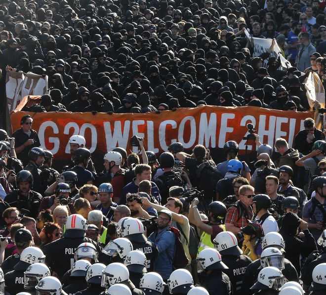 Η γερμανική αστυνομία, που έχει κινητοποιηθεί εδώ και μέρες, εξέφραζε ήδη νωρίτερα την ανησυχία ότι θα ξεσπούσαν επεισόδια μόλις νύχτωνε. Περίπου 20.000 αστυνομικοί απ’ όλη τη Γερμανία έχουν αναπτυχθεί στην πόλη, όπου βρίσκεται ένα από τα μεγαλύτερα γερμανικά λιμάνια.
