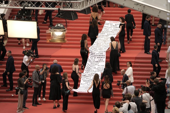 Ένα τεράστιο πανό, με τα ονόματα των γυναικών που δολοφονήθηκαν στη Γαλλία, ανάρτησαν σήμερα στο κόκκινο χαλί των Καννών τα μέλη μιας φεμινιστικής συλλογικότητας, οι «αφισοκολλήτριες» με την ευκαιρία της προβολής ενός ντοκιμαντέρ για τις γυναικοκτονίες.