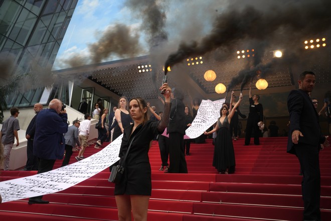 Την Παρασκευή, μια άλλη ακτιβίστρια, που ήθελε να καταγγείλει τους βιασμούς στην Ουκρανία από τους Ρώσους, εμφανίστηκε στο κόκκινο χαλί γυμνόστηθη, με κηλίδες αίματος στο εσώρουχο. Την ευθύνη για την «εισβολή» αυτή ανέλαβε στη συνέχεια μέσω του Twiiter το κίνημα Scum που αυτοπροσδιορίζεται ως «ριζοσπαστική» φεμινιστική οργάνωση.