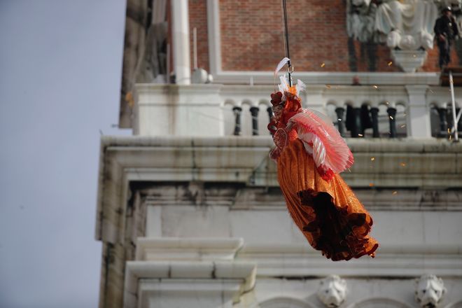 Κάθε πρώτη Κυριακή του καρναβαλιού της Βενετίας, το μεσημέρι, μια νεαρή γυναίκα κατεβαίνει “πετώντας” από το καμπαναριό της βασιλικής του Αγίου Μάρκου, κρεμασμένη από ένα καλώδιο, και πετάει κονφετί στους χιλιάδες μεταμφιεσμένους που φορούν μάσκες και κοστούμια εποχής κι έχουν κατακλύσει την πλατεία, για να συναντήσει κατόπιν τον δόγη 80 μέτρα χαμηλότερα.