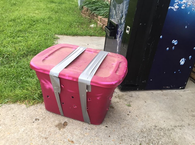 Σύμφωνα με το κέντρο που εδρεύει στην Οκλαχόμα, βρήκαν ένα πλαστικό κουτί κλειστό και με τρύπες σκαλισμένες ώστε να μπαίνει αέρας. Όταν ένας υπάλληλος το άνοιξε, αντίκρισε πολλά μωρά σκυλάκια. Συγκεκριμένα ήταν δέκα σε αριθμό, όλα στοιβαγμένα μέσα, μετά βίας να χωράνε και βρεγμένα λόγω του υπερβολικά περιορισμένου χώρου που είχαν.