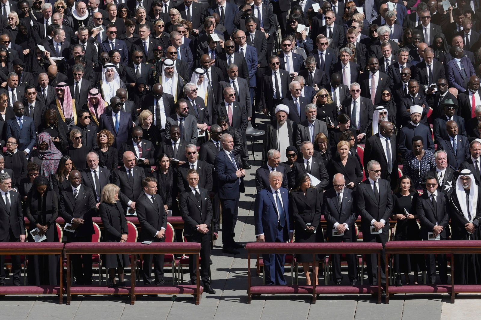 Δεκάδες διεθνείς ηγέτες βρίσκονται στην κατάμεστη πλατεία του Αγίου Πέτρου στο Βατικανό για την κηδεία του πάπα Φραγκίσκου.