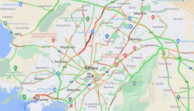 Κίνηση στους δρόμους: Στο “κόκκινο” πολλές περιοχές – LIVE ΧΑΡΤΗΣ