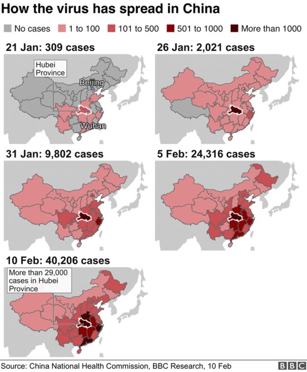 Σύμφωνα με την επαρχιακή επιτροπή υγείας στη Χουμπέι, είχαν επιβεβαιωθεί ως τα μεσάνυχτα της Δευτέρας συνολικά 31.728 κρούσματα της επιδημίας που προκαλεί ο 2019-nCoV και 974 θάνατοι στη Χουμπέι. Σύμφωνα με τα στοιχεία της επαρχιακής επιτροπής, ο δείκτης θνησιμότητας του ιού ανέρχεται σε 3,07%.