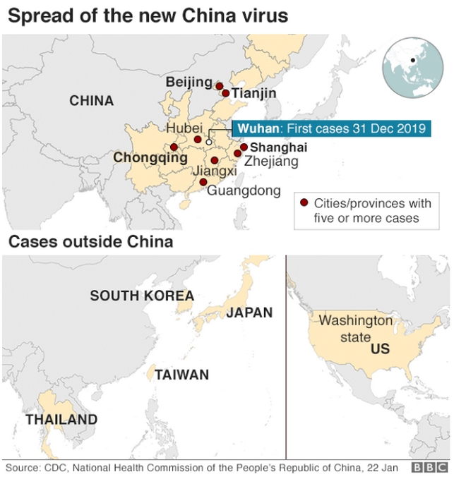 Σύμφωνα με το BBC, το πρώτο κρούσμα του ιού εμφανίστηκε στις 31 Δεκέμβρη, όμως μέχρι τις 20 Ιανουαρίου δεν είχε επιβεβαιωθεί το εάν μπορεί να μεταδοθεί από άνθρωπο σε άνθρωπο.