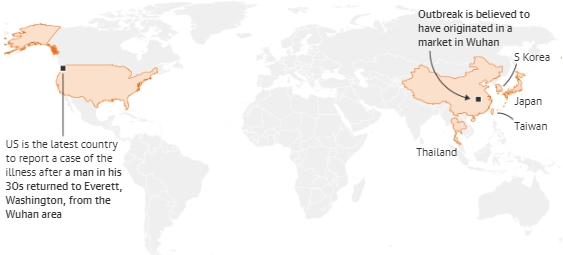 - Η Ταϊλάνδη έχει αναφέρει τέσσερα κρούσματα και η Νότια Κορέα, η Ιαπωνία, η Ταϊβάν και οι ΗΠΑ από μία περίπτωση η κάθε χώρα. Οι ασθενείς σε αυτές τις περιπτώσεις είναι είτε κάτοικοι της Ουχάν ή είχαν πρόσφατα επισκεφθεί την πόλη.