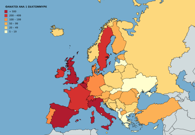 Κορονοϊός: Οι θάνατοι ανά εκατομμύριο κατοίκων στην Ευρώπη – Η θέση έκπληξη της Ελλάδας