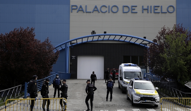 Ένα παγοδρόμιο στη Μαδρίτη μετατράπηκε προσωρινά σε νεκροτομείο καθώς η Ισπανία προσπαθεί να αντιμετωπίσει τα χιλιάδες “χτυπήματα” του κορονοϊού.