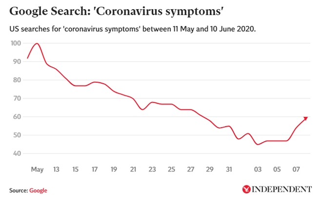 Πρόσφατες αναζητήσεις στο Google αφήνουν ανοιχτό το ενδεχόμενο ενός δευτέρου κύματος κορονοϊού στις ΗΠΑ. Αναζητήσεις όπως “συμπτώματα κορονοϊού” ή “Τεστ Covid-19 κοντά μου”, έχουν παρουσιάσει αισθητή αύξηση τις τελευταίες ημέρες.