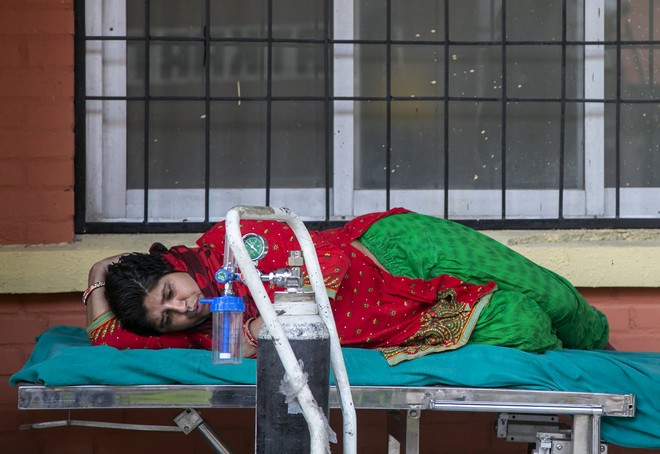 Ασθενής με κορονοϊό λαμβάνει οξυγόνο έξω από νοσοκομείο στο Κατμαντού του Νεπάλ 2021 Niranjan Shrestha/AP