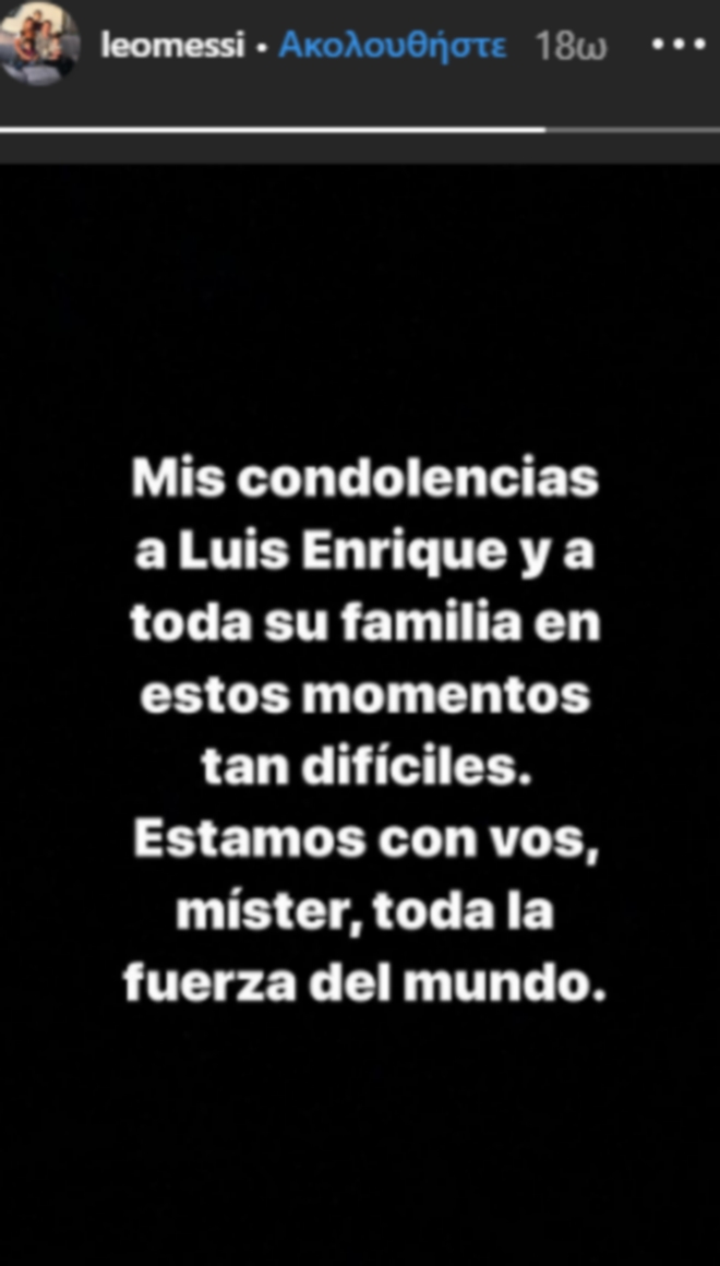 Θα μας λείψεις πολύ, αλλά θα σε θυμόμαστε κάθε ημέρα με την ελπίδα ότι θα συναντηθούμε ξανά στο μέλλον. Θα είσαι το αστέρι που οδηγείς την οικογένειά μας», ανέφερε σε ανακοίνωσή του ο Λουίς Ενρίκε.