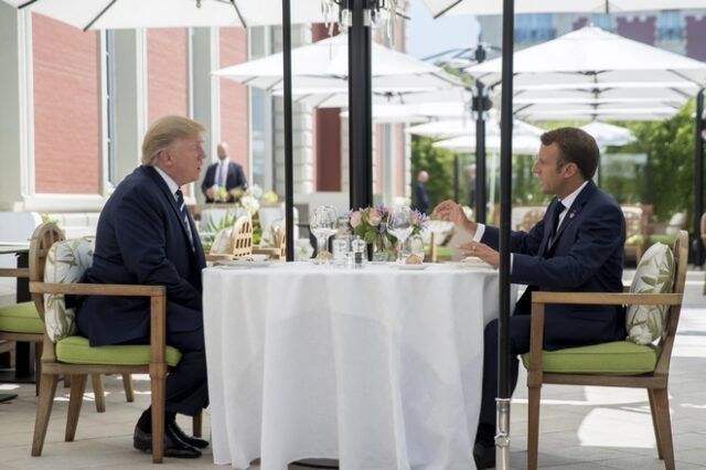 Ενώ οι αποκλίσεις με τις ΗΠΑ κινδυνεύουν να τορπιλίσουν οποιαδήποτε ενότητα της Ομάδας των Επτά για το εμπόριο ή το κλίμα, ο πρόεδρος της Γαλλίας θέλησε να “εξηγήσει” στον ομόλογό του των ΗΠΑ τις γαλλικές και τις ευρωπαϊκές θέσεις ώστε να ‘”μειώσει την πίεση” που υφίσταται η σχέση με τις Ηνωμένες Πολιτείες”, είπε ένας σύμβουλος.