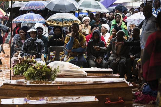 Δεκάδες άνθρωποι που πενθούν δικούς τους είχαν συγκεντρωθεί σε σχολείο στην Τσιλόμπουε, κοντά στην Μπλαντάιρ. Εικοσιένα φέρετρα καλυμμένα με στεφάνια ήταν παραταγμένα κάτω από σκηνή, προστατευμένα από το ψιλόβροχο που συνεχιζόταν.