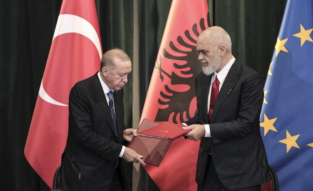 Με δώρο καμικάζι drones βρέθηκε στα Τίρανα ο Ρετζέπ Ταγίπ Ερντογάν για τα εγκαίνια του μεγαλύτερου τζαμιού των Βαλκανίων. Όσα ειπώθηκαν με τον Έντι Ράμα.