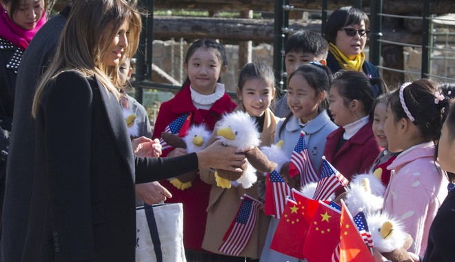 Η Μελάνια Τραμπ, δίχως τη συντροφιά του Αμερικανού προέδρου, είχε την ευκαιρία να δει από κοντά τα πάντα που φιλοξενούνται σε ζωολογικό κήπο και να επισκεφθεί το Μέγα Σινικό Τείχος.