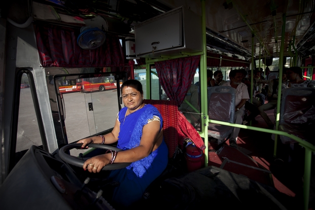 Η Sumita από το Μπομπάλ της Ινδίας κατέχει μια ιδιαίτερη πρωτιά. Είναι η πρώτη γυναίκα οδηγός λεωφορείου στην πόλη της.