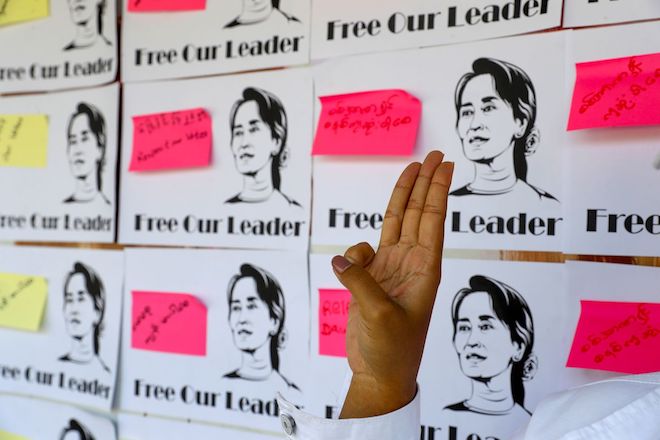 Πολίτες κατέβηκαν στους δρόμους σε όλη τη χώρα σήμερα για έκτη συνεχόμενη ημέρα. Εκατοντάδες εργάτες παρατάχθηκαν σε δρόμο στην πρωτεύουσα Ναϊπιντάου, σε υποστήριξη του κινήματος πολιτικής ανυπακοής, φωνάζοντας συνθήματα κατά της χούντας και κρατώντας πανό υπέρ της Σου Τσι.