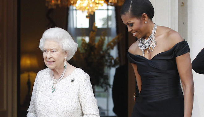 Η Μισέλ Ομπάμα με την βασίλισσα της Βρετανίας Ελισάβετ Β, στο Λονδίνο, 25 Μαΐου 2011 AP