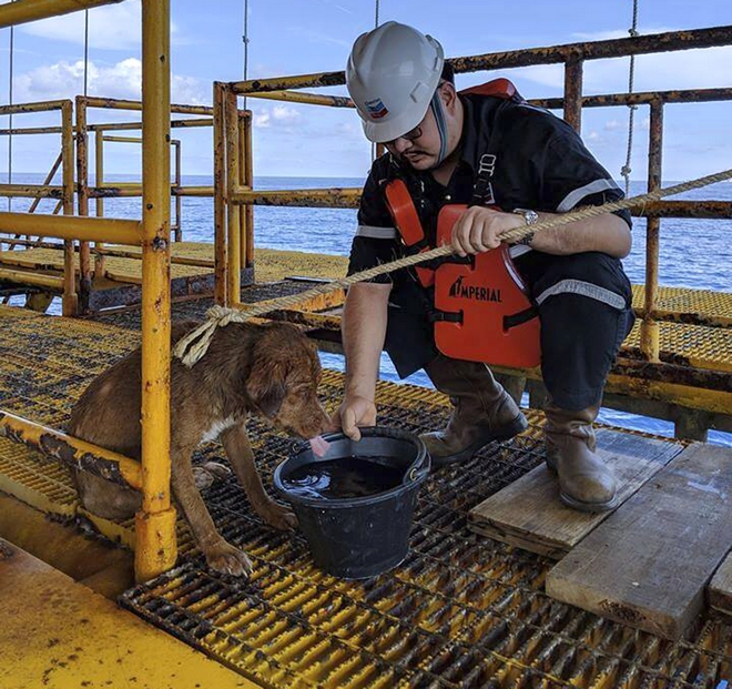 Δεν πίστευαν στα μάτια τους εργάτες σε γεωτρύπανο στη μέση της θάλασσας όταν είδαν έναν σκύλο να κολυμπά κοντά στην εγκατάσταση, καθώς η πλησιέστερη ακτή απείχε περίπου 200 χιλιόμετρα.
