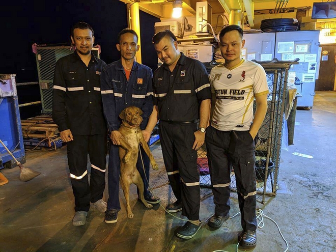 Εργάτης της πλατφόρμας αυτής, που βρίσκεται ανοιχτά της Ταϊλάνδης, δήλωσε στα Μέσα ότι συνάδελφός του είδε το σκυλί να κολυμπά προς το μέρος τους και άπλωσε μια ράβδο για να πιαστεί. Όμως λόγω των κυμάτων αυτό αποδείχθηκε δύσκολο με τον τετράποδο επισκέπτη να γλιστρά συνεχώς.
