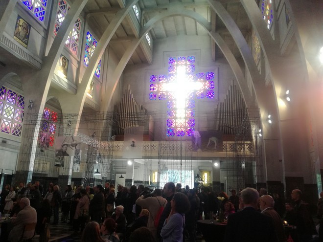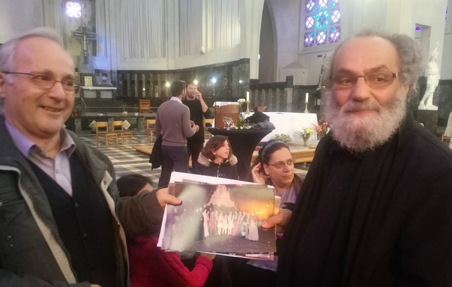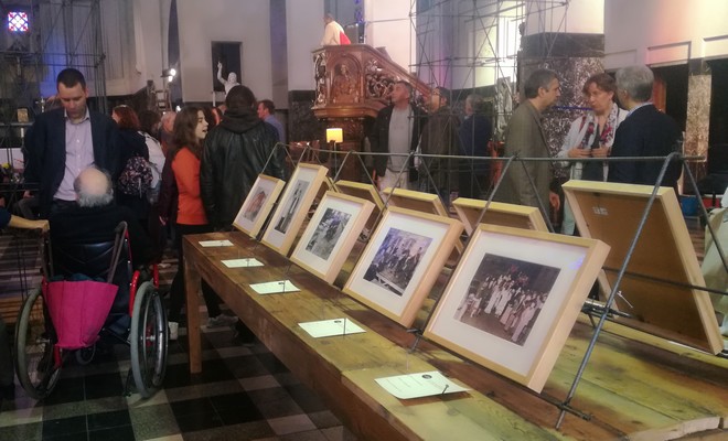 Σε αυτήν, την ίδια καθολική εκκλησία, βρέθηκε ξανά αυτές τις μέρες ο πατήρ Σπυρίδων Αντωνίου για να εγκαινιάσει την έκθεση «Έλληνες του Μόλενμπεκ». Μέσα από φωτογραφίες από οικογένειες της περιοχής περνάει όλη η ιστορία της ξενιτιάς τους: τα ορυχεία, τα εργοστάσια, αλλά και τα καφενεία, τα γλέντια, οι χαρές και οι αναμνήσεις τους.