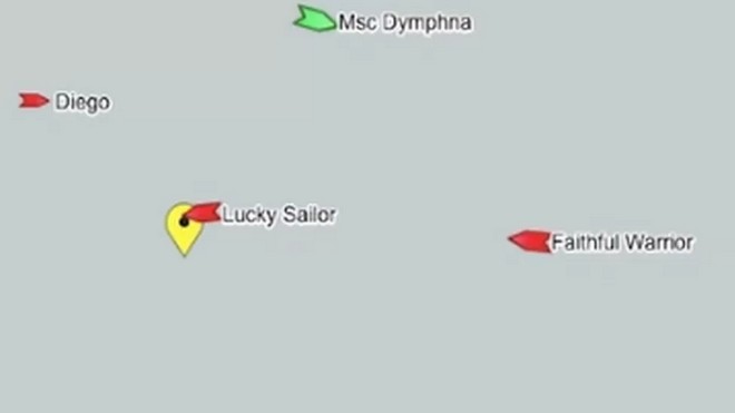 Το κινούμενο σχέδιο του Marine Traffic δείχνει ένα πλοίο που ονομάζεται Lucky Sailor να στρίβει απότομα βόρεια στις 15:00.