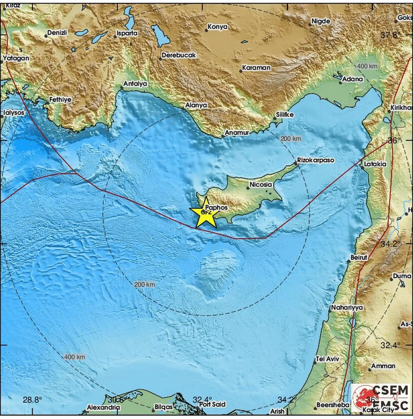 Το επίκεντρο του νέου σεισμού είναι παρόμοιο με αυτόν του πρωινού στην επαρχία Πάφου και έγινε αισθητός, επίσης, σε όλο το νησί.