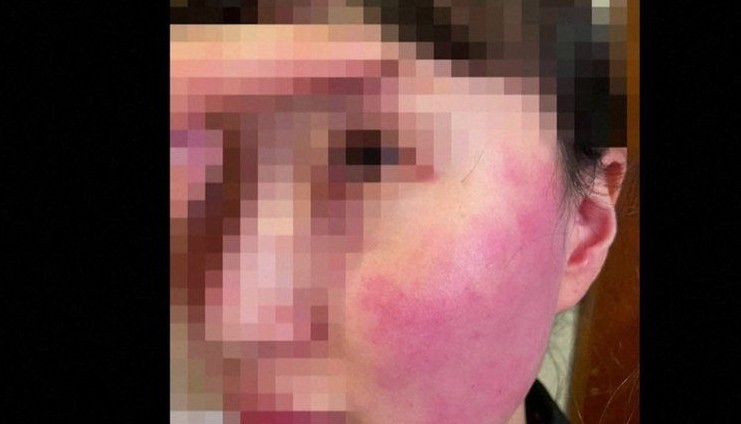Αφού λοιπόν απώθησε μία υπάλληλο, χαστούκισε μία άλλη που επιχείρησε να παρέμβει. Και το χαστούκι ήταν τόσο δυνατόν που το μάγουλο της κοπέλας έγινε κατακόκκινο (φωτογραφία κάτω).
