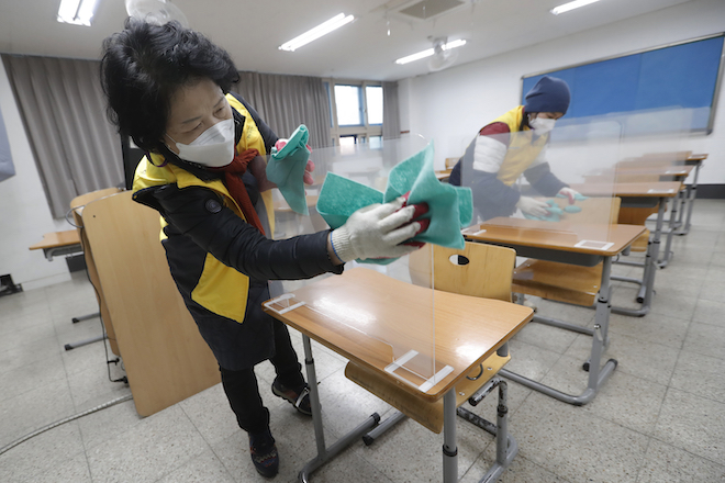 Νότια Κορέα: Με πλαστικά χωρίσματα, ακόμη και από νοσοκομεία, μισό εκατομμύριο μαθητές δίνουν εξετάσεις