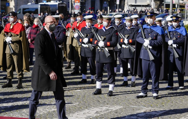 Ο πρόεδρος του Ευρωπαϊκού Συμβουλίου Σαρλ Μισέλ στην κηδεία του Νταβίντ Σασόλι AP Photo/Gregorio Borgia