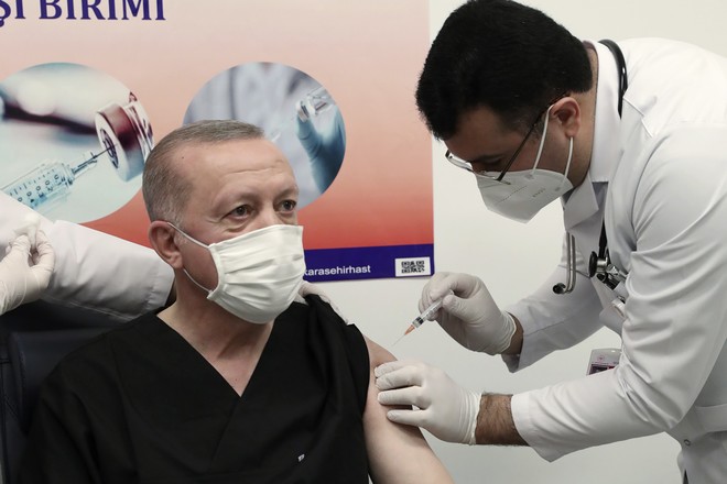 Την πρώτη δόση του εμβολίου Sinovac της Κίνας έλαβε ο Ρετζέπ Ταγίπ Ερντογάν το απόγευμα της Πέμπτης (14/01). Εμβολιάστηκε σε ζωντανή τηλεοπτική μετάδοση.
