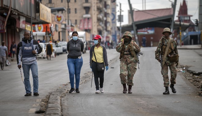 Στη Νότια Αφρική, η αστυνομία επιτέθηκε σε πολίτες με πλαστικές σφαίρες εφαρμόζοντας το lockdown, με αποτέλεσμα να τραυματιστούν θανάσιμα τρεις άνθρωποι.