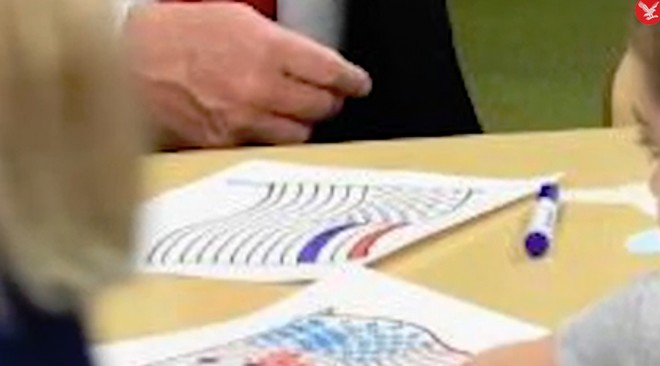 Σε επίσκεψη του σε νοσοκομείο παίδων, ο Donald Trump κάθισε να ζωγραφίσει με τα παιδιά. Του έδωσαν να βάλει χρώματα, στις λωρίδες μιας αμερικανικής σημαίας. Δεν το πέτυχε.