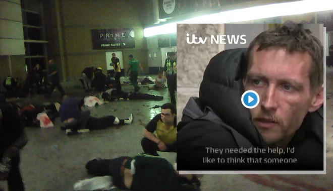 Η τρομοκρατική επίθεση στο Μάντσεστερ μονοπωλεί βρετανικά και διεθνή ΜΜΕ, για την αγριότητα με την οποία δολοφονήθηκαν μικρά παιδιά και νέοι άνθρωποι, που παρευρίσκονταν στη συναυλία της Ariana Grande το βράδυ της Δευτέρας, στο Manchester Arena. Από τις προσωπικές ιστορίες των πρωταγωνιστών της πιο αιματηρής επίθεσης στη Βρετανία την τελευταία δεκαετία, ξεχώρισε η μαρτυρία ενός 35χρονου άστεγου, ο οποίος άκουσε την έκρηξη και τις φωνές των θυμάτων και έσπευσε να βοηθήσει. Στις συγκλονιστικές του μαρτυρίες, εξιστορούσε πως κλήθηκε να αφαιρέσει καρφιά και σπασμένα γυαλιά από το σώμα και το πρόσωπο μικρών κοριτσιών, ενώ έγινε μάρτυρας των άψυχων κορμιών μικρών παιδιών που κείτονταν στο έδαφος έξω από το χώρο της συναυλίας.