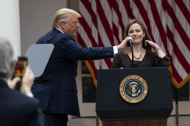 «Θα είσαι φανταστική», είπε, απευθυνόμενος στην συντηρητική δικαστίνα Μπάρετ, που στεκόταν στο πλευρό του Ρεπουμπλικάνου προέδρου.