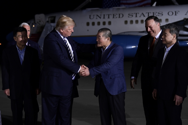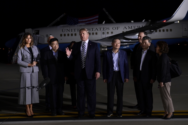 «Με χαρά σας πληροφορώ ότι ο υπουργός Εξωτερικών Μάικ Πομπέο βρίσκεται στον αέρα και επιστρέφει από τη Βόρεια Κορέα μαζί με τους 3 υπέροχους κυρίους που όλοι τόσο προσδοκούν να συναντήσουν. Η υγεία τους φαίνεται πως είναι καλή», έγραψε νωρίτερα ο Τραμπ στο Twitter.