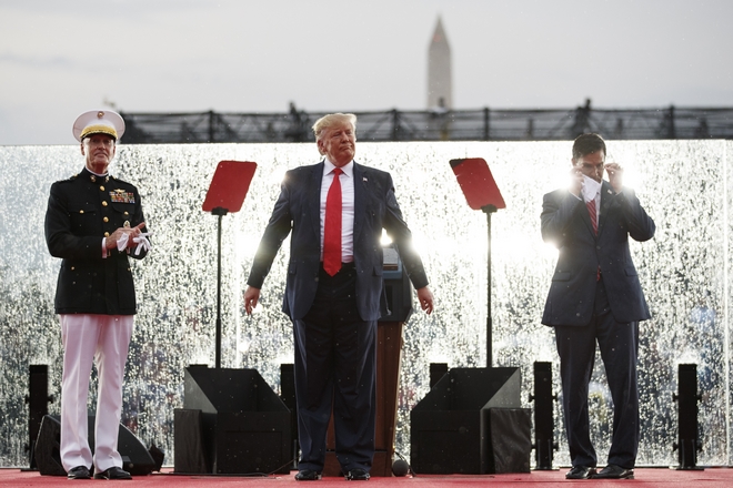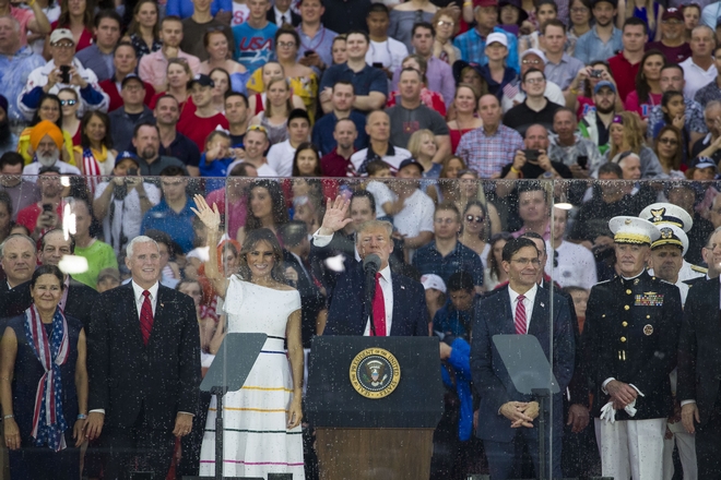 Προκειμένου να αποκρούσει την άσκηση οποιασδήποτε κριτικής, σύμφωνα με την οποία οι στρατιωτικοί ηγέτες των ΗΠΑ δεν υποστήριξαν τους εορτασμούς με την συμμετοχή τμημάτων των αμερικανικών ενόπλων δυνάμεων, ο Αμερικανός πρόεδρος κάλεσε κάποια στιγμή στην εξέδρα, τον υπηρεσιακό υπουργό Άμυνας Μαρκ Έσπερ, αλλά και τον πρόεδρο του Μεικτού Στρατιωτικού Επιτελείου των ΗΠΑ, στρατηγό Τζόζεφ Ντάνφορντ.