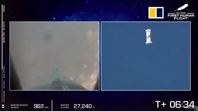 Οι τέσσερις επιβιβάστηκαν στον πλήρως αυτόνομο πύραυλο – κάψουλα της Blue Origin, ύψους 18,3 μέτρων και πραγματοποιήσαν ένα ταξίδι 11 λεπτών έως το όριο του Διαστήματος.