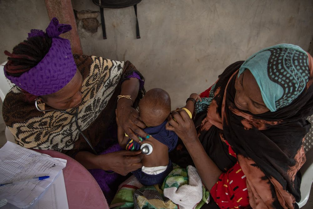 Ιατρικές δραστηριότητες για τον πληθυσμό στο Μασακόρι. Η Ndoungamandji Solange, νοσηλεύτρια των Γιατρών Χωρίς Σύνορα εξετάζει έναν μικρό ασθενή. –Ιανουάριος 2024 -Τσαντ Giuseppe La Rosa/MSF