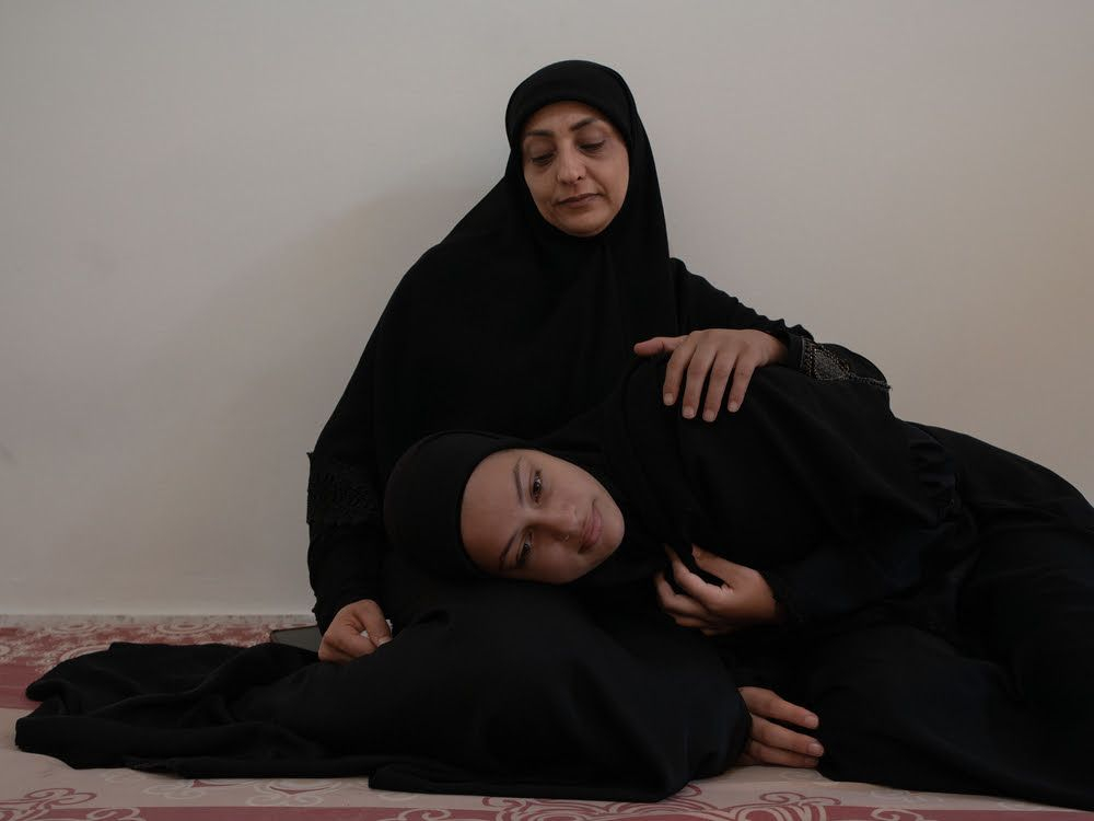 Η Ezdihar Αl Diqa, 39 ετών, και η κόρη της Nouraya, 14 ετών, στο δωμάτιο που μοιράζονται με άλλα 14 άτομα από τις 29 Σεπτεμβρίου στον καταυλισμό Azariye για εκτοπισμένους, στο κέντρο της πρωτεύουσας του Λιβάνου. Η Ezdihar, η οποία ζει στο Dahieh, έφυγε από τα νότια προάστια της Βηρυτού με τον σύζυγό της και τα δύο παιδιά της το βράδυ της 28ης Σεπτεμβρίου, μετά από συναγερμό για βόμβα που είχε στόχο τη γειτονιά τους.-Οκτώβριος 2024-Λίβανος. Antoni Lallican/Hans Lucas