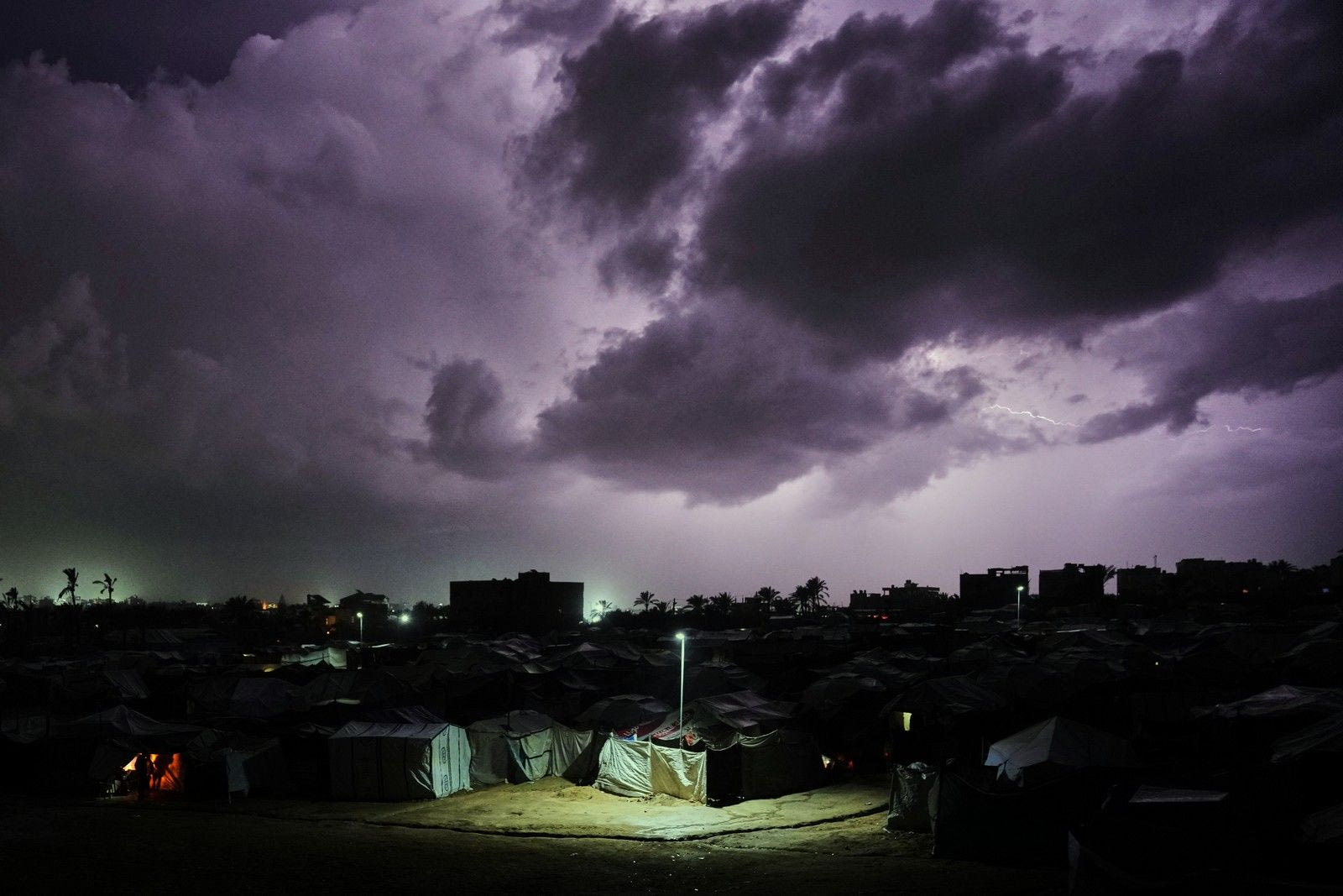 Η καταιγίδα πάνω από τον καταυλισμό σκηνών για εκτοπισμένους Παλαιστίνιους στη Ζαουάιντα, στην κεντρική Λωρίδα της Γάζας, την Τετάρτη 10 Δεκεμβρίου 2025