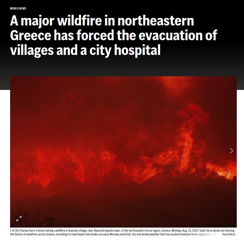 Το AP αναφέρθηκε στις πολλαπλές φωτιές στη βόρεια Ελλάδα και στα νέα μέτωπα στον Ασπρόπυργο.