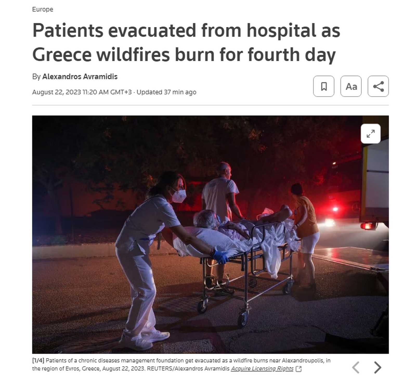 Το Reuters αναφέρεται στην εκκένωση 65 ατόμων από το νοσοκομείο της Αλεξανδρούπολης και στην απομάκρυνση 14 ατόμων με σκάφος της ακτοφυλακής.