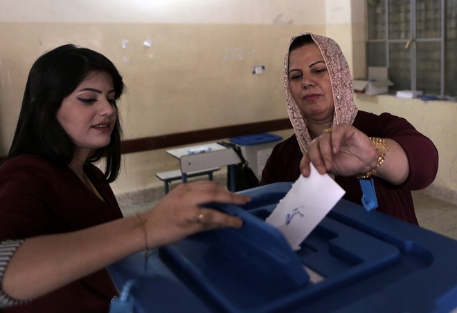 An Iraqi Kurdish woman casts her ballot during the referendum on independence from Iraq in Irbil, Iraq, Monday, Sept. 25, 2017. (AP Photo/Khalid Mohammed) AP