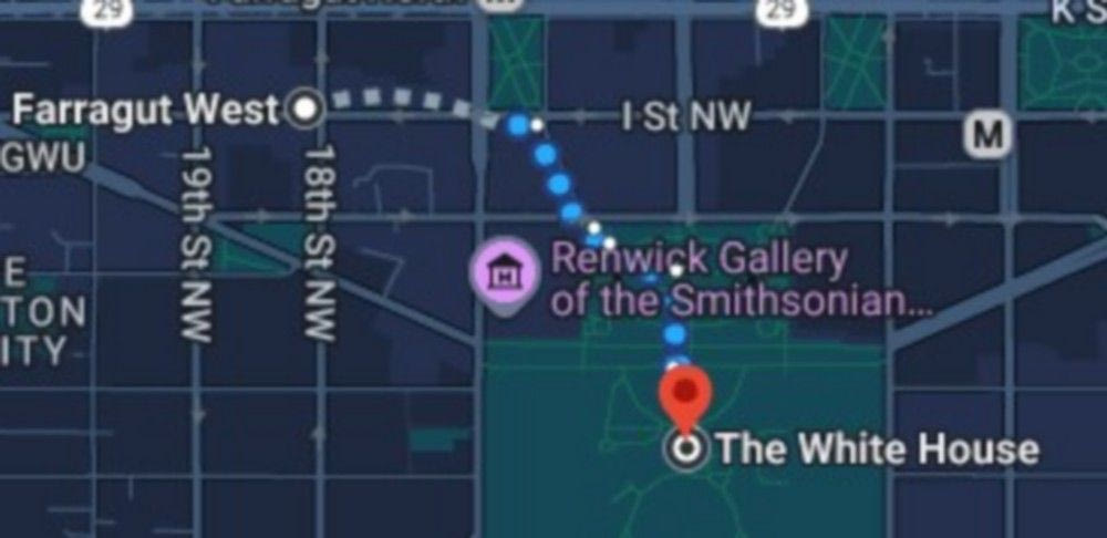 Η απόσταση από τον Λευκό Οίκο στο σημείο των πυροβολισμών. Google Maps