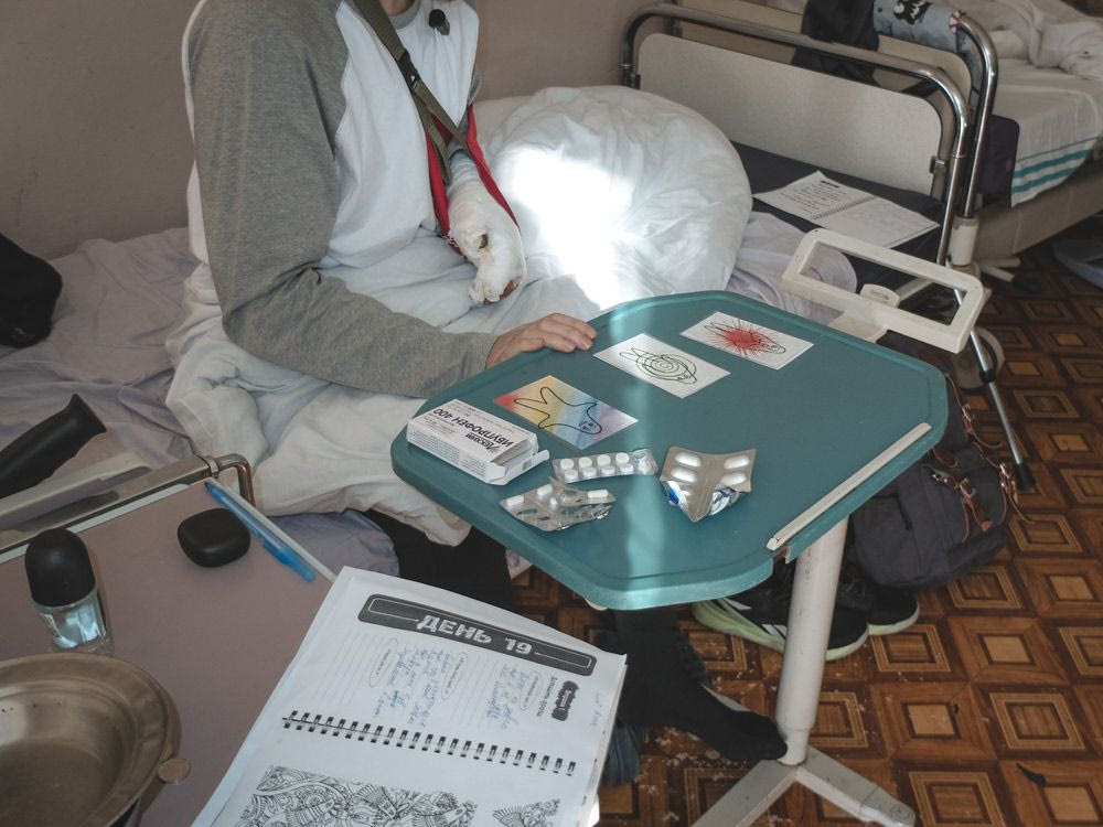 Ο Ihor, 27 ετών, λαμβάνει ιατρική περίθαλψη για πάνω από ένα μήνα μετά από πολλαπλά τραύματα που υπέστη από βομβαρδισμό στην περιοχή Sumy. Τα τραύματά του περιλαμβάνουν μικρά θραύσματα στα μάτια του και ένα κάταγμα στον καρπό.