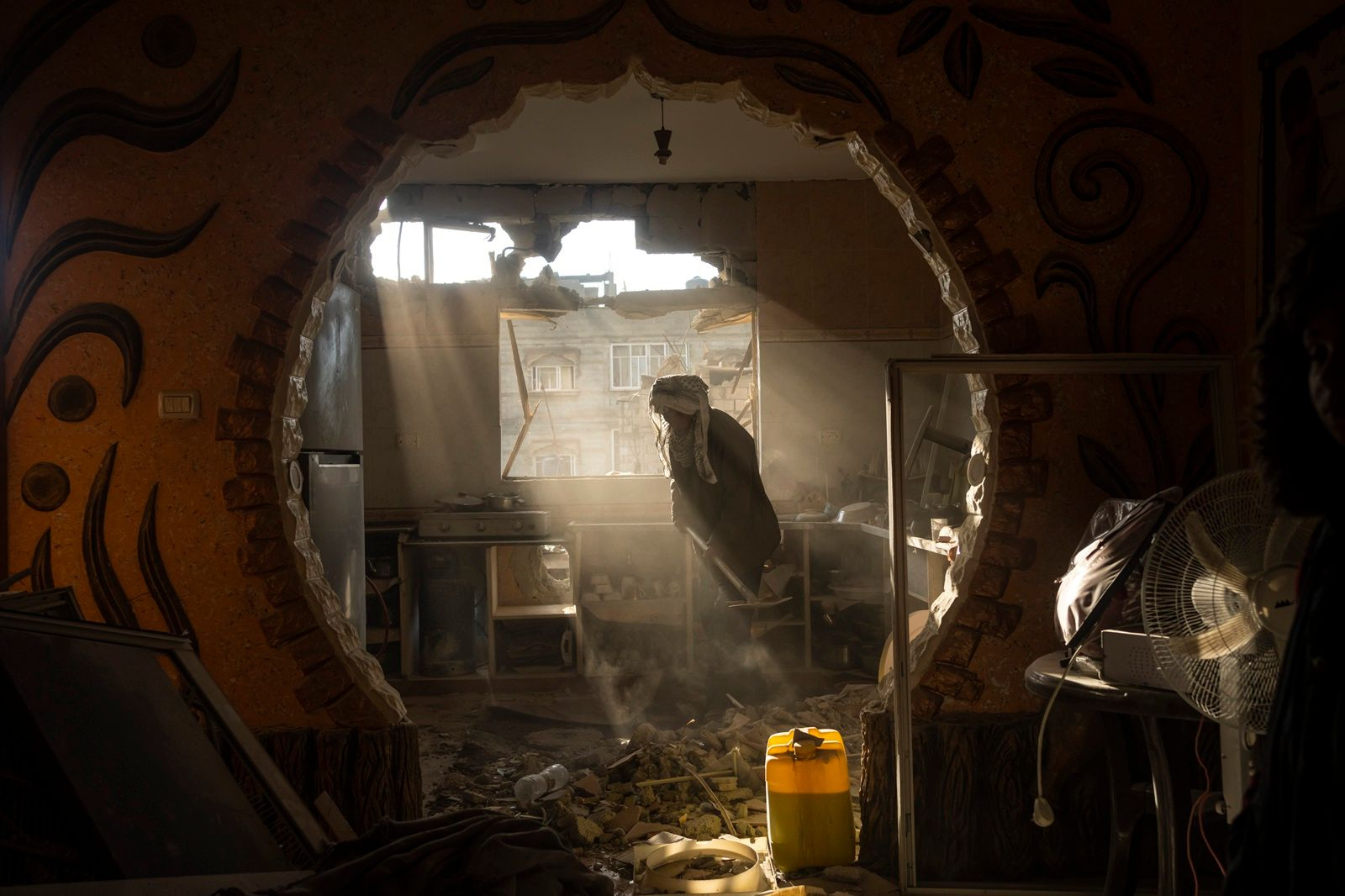 A Palestinian cleans up his house after an Israeli strike in Rafah, southern Gaza Strip, Saturday, Jan. 27, 2024. (AP Photo/Fatima Shbair)