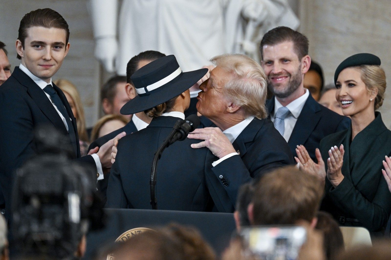 Ένα άβολο φιλί στη σύζυγό του, Μελάνια επιχείρησε να δώσει ο Ντόναλντ Τραμπ καθώς περπατούσε στη Ροτόντα του Καπιτωλίου, λίγο προτού ορκιστεί ως ο 47ος πρόεδρος των ΗΠΑ.