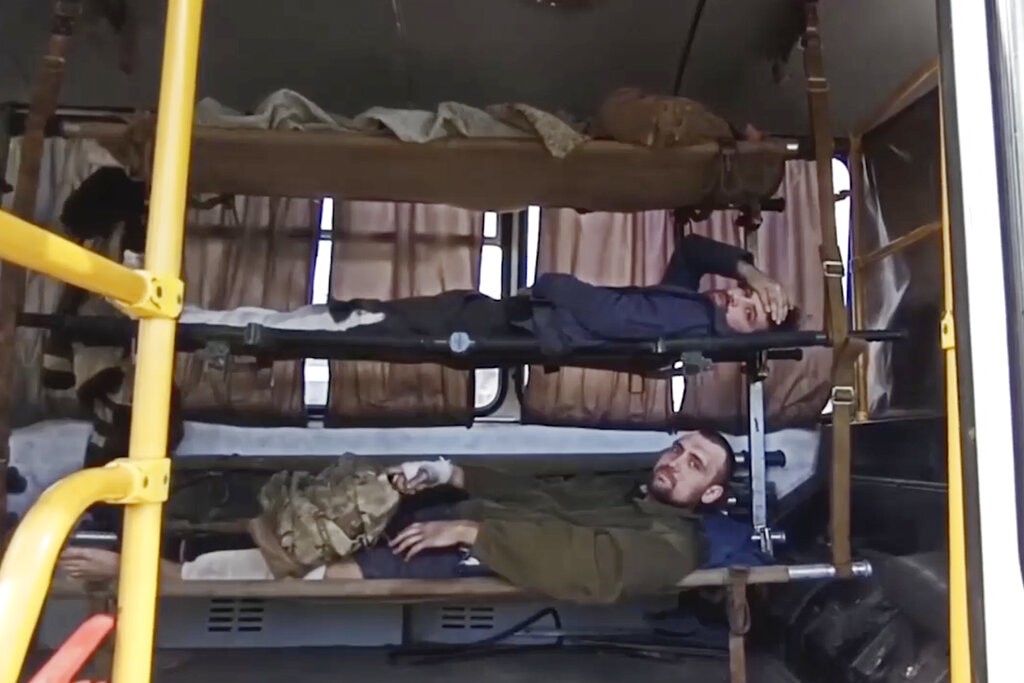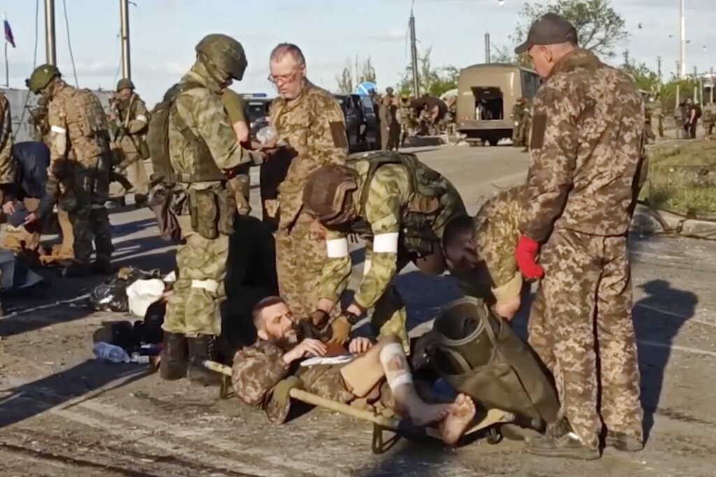 Ουκρανοί στρατιώτες που έχουν τραυματιστεί μεταφέρονται έξω από το Αζοφστάλ